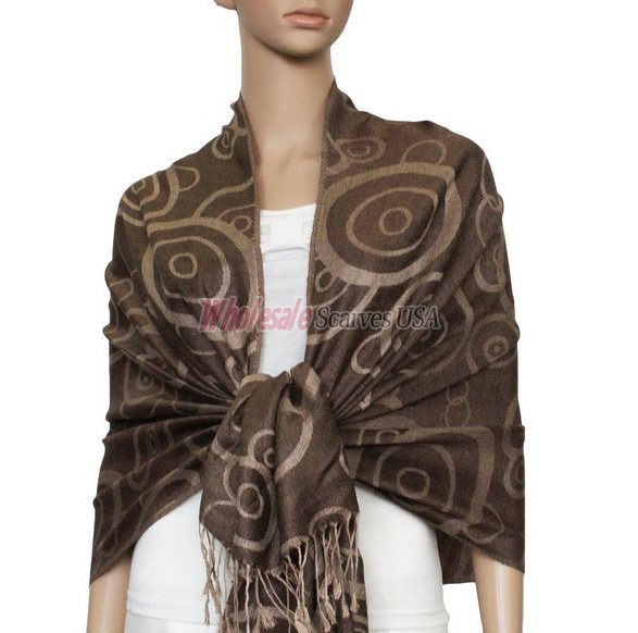 Soft Jacquard Pashmina with Geometric Circle Pattern. A luxurious pashmina is the perfect Fashion accessory for any season. Size appox: 28" x 70" with Fringes.